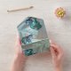 La nature jaillit de vie dans la nouvelle collection Papillon de Paradis. Éclaboussure tropicale scintillante en bleus, turquoise et feuilles bleu-vert sur un motif noir texturé avec un design de papillons colorés pour le couple de mariés.