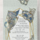 Valeurs romantiques et asymétriques, couleurs pastel bleues et roses et courbes avec lignes sinueuses, et relief classique doré d'amour et de ludicité avec un design de masques de style victorien pour le couple de mariés.