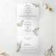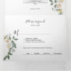 L'invitation pliable tout-en-un Leaf Back Wedding Tri-Fold est le choix parfait pour un mariage d'inspiration bohème. Avec ses feuilles et son eucalyptus à l'aquarelle vert foncé, elle dégage un charme boisé moderne et rustique.