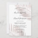 Le faire-part de mariage Tropical blush palms présente un imprimé moderne rose palmier avec un script branché.