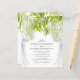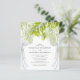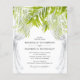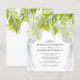 Faire-part de mariage à thème tropical sur la plage à petit budget avec un fond blanc élégant qui peut être changé en n'importe quelle couleur, des rideaux de mariage transparents, des feuilles de palmier, des guirlandes lumineuses et un modèle de mariage élégant facile à personnaliser.
