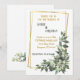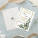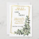 Cette invitation feuille tropicale verte est parfaite pour un mariage simple. Le design présente de beaux feuilles verts peints à la main, ornant un cadre géométrique doré. Personnalisez le texte et le message en quelques clics seulement.
