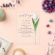 Une invitation de mariage en acrylique transparent époustouflante, mettant en vedette une seule tulipe blanche et une typographie moderne élégante. Le fond transparent donne un aspect luxueux et contemporain qui se démarque magnifiquement dans n'importe quel thème de mariage, en particulier les styles minimaliste, botanique et rustique moderne. Une façon sophistiquée de présenter les noms des mariés et les détails de l'événement avec une touche florale fraîche. Parfait pour les lieux haut de gamme, les mariages dans les jardins ou les célébrations intemporelles.