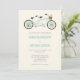 Une faire-part de mariage moderne avec un vélo tandem avec panier et fleurs. Veuillez vous renseigner sur les couleurs personnalisées !