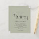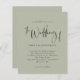 Script Pale Sage Green Faire-part de mariage Un prix budgété PETIT 4,5" x 5,6" alternative. Disponible dans un STOCK SEMI-GLOSS 110 lb CARD qui est l'option par défaut (plus épais pour les invitations), OU un STOCK SATIN FINISH 80 lb THINNER PAPER (idéal pour les boîtiers). Les enveloppes sont en option et légèrement plus grandes que la taille de la carte. Ce design élégant a une typographie stylisée en noir pour le cap principal du Mariage de sur un arrière - plan vert Sage clair. Le reste du texte que vous pouvez facilement personnaliser.