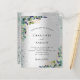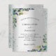 Arrière - plan à l'aspect argent faux décoré de végétation eucalyptus, feuillage doré et parties scintillant argent et vert faux, scintille. Personnalisez et ajoutez vos noms et les détails du mariage. Lettres noires.