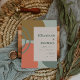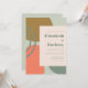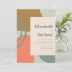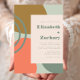 Cette conception moderne présente des formes fluides abstraites dans des nuances de vert foncé atténué, d'or et d'orange sur un fond vert sauge pâle. Personnalisez-le avec les noms des mariés en typographie épaisse et les détails du mariage en texte vert foncé sur un rectangle rose pâle.