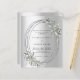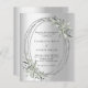 Un faux arrière - plan argenté décoré de vert sage. Un cadre en faux argent. Personnalisez et ajoutez vos noms et détails. 1 feuille = 1 invite imprimé bord à bord.