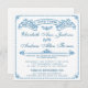 Ce faire-part assez bleu de mariage est parfait pour le mariage traditionnel, formel, rustique, ou vintage. La bannière et le cadre de rouleau ont un motif de feuille. Le dos a un endroit pour votre monogramme. Personnaliser avec votre propre texte. Veuillez examiner mon magasin pour assurer les différentes couleurs et les articles relatifs qui assortissent cette carte. Ne voient pas la couleur que vous aimez ? Contactez-moi. Illustration originale par le pj_design/jammydesign.
