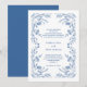 Donnez le ton de votre jour spécial avec ce faire-part de mariage vintage floral bleu élégant. Avec une délicate illustration florale bleue d'inspiration vintage, ce design est parfait pour les célébrations de mariage classiques, de jardin ou romantiques.