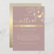 Elégant, moderne, rose poussiéreux faire-part de mariage virtuel avec dentelle florale d'or chic.