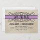 Annonce de mise en garde élégante et chic avec une bordure de fond à l'aspect vintage et une bordure de rayure violette claire et de volute fantaisie. Ce design élégant est le choix parfait pour annoncer votre mariage inspiré du chic vintage. Facile à personnaliser, il suffit d'ajouter vos détails de mariage dans les champs de texte fournis. Cliquez sur "Personnaliser" pour trouver plus d'options de personnalisation.