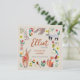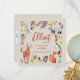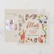 Présentation de bébé unisexe faire-part beige avec des animaux mignons de la forêt, des fleurs et des oiseaux. Œuvre originale de Caroline Bonne Müller