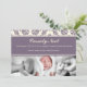 Ce faire-part de naissance en damas violet est parfait pour présenter votre nouveau-né.
