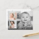 Calligraphie moderne "Bienvenue" avec une grande photo, deux petites photos dans un cadre avec des statistiques de naissance et message personnalisé carte postale d'annonce.