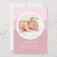 Une douce annonce rose avec une fenêtre photo ronde encadrée de minuscules points de couture et de festons.