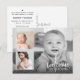 Faire-part de naissance avec calligraphie moderne "Bienvenue" avec une grande photo, deux petites photos dans un cadre avec des statistiques de naissance et un message personnalisé.