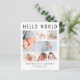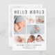 Une annonce de naissance élégante et abordable pour présenter votre nouveau-né à votre famille et à vos amis, avec "Hello World" en grandes lettres, un collage de 7 photos et leur nom, date de naissance et statistiques de naissance dans une typographie moderne simple. Au verso, ajoutez une photo supplémentaire et votre message personnalisé. Ce papier semi-brillant économique est similaire en poids au papier photo. Une version en carton traditionnel est également disponible (envoyez-nous un message pour le lien).