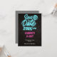 Cette carte de faire-part de naissance vibrante présente un thème néon saisissant avec des couleurs bleues et roses vives sur un fond de mur de briques noir élégant. La carte utilise des polices grasses et ludiques pour créer une atmosphère amusante et animée, parfaite pour célébrer un anniversaire spécial. Le design moderne et le style énergique assurent que cette fête sera inoubliable.