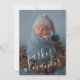 Des faire-part de naissance élégamment doux mettent en vedette votre photo de nouveau-né préférée en pleine page, avec le nom du bébé en écriture blanche penchée, et au dos figurent les statistiques de naissance et vos noms en blanc (ou dans la couleur et la police de votre choix.) Changez la couleur de fond en n'importe quelle couleur qui convient à votre photo. Vous pouvez également ajouter plus de photos au dos !
