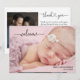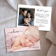Une simple annonce de naissance mettant en vedette la photo de votre nouveau-né avec un texte en surimpression « bienvenue » dans un script blanc élégant. Ajoutez simplement le nom de votre bébé et sa date de naissance. Le verso, avec son « merci » élégant, est l'endroit idéal pour un message personnalisé et une autre photo. Cliquez simplement sur le bouton modifier/personnaliser pour personnaliser ce design.