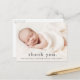 Une annonce de naissance avec remerciement pour photo douce avec un remerciement moderne et une photo horizontale pleine page. Le verso est une carte postale avec un message personnel de la famille.