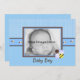 Présentez votre petit homme avec ce faire-part de naissance tout-petit. Un ruban bleu avec une garniture brune, a une traînée d'abeilles mignonnes, pleines de chichi. La moitié supérieure du arrière - plan est un plaid/en vichy bleu, et le fond est un bleu texturé. Un cadre marron et bleu avec une abeille douce au coin, est prêt à tenir la photo de votre petit!