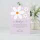 Célébrez l'arrivée imminente d'un petit trésor avec notre carte de baby shower "Bébé en fleurs, marguerite violette". Cette carte de remerciement magnifiquement conçue est ornée de délicates marguerites blanches, symbolisant la joie qui éclôt qu'un nouveau bébé apporte dans la vie. La palette de couleurs douces et les illustrations florales charmantes créent une atmosphère accueillante et joyeuse, parfaite pour honorer la future maman et accueillir les invités à l'occasion joyeuse. Que vous organisiez une baby shower traditionnelle ou une célébration plus moderne, cette carte donne le ton pour un événement mémorable et chaleureux. Avec son design élégant et ses détails attentionnés, la carte de remerciement de baby shower "Bébé en fleurs, marguerite violette" est une merveilleuse façon de partager l'excitation de ce moment spécial.