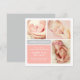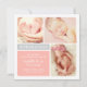 Présentez votre bébé fille avec ce faire-part de naissance carré moderne à bloc de couleur. Le design carré présente une bannière "Introducing" en gris au-dessus d'un bloc de texte rose blush avec le nom du bébé en écriture élégante, les détails de naissance et un message des parents fiers. Trois emplacements de photos vous permettent de mettre en valeur vos images préférées de nouveau-né. Le dos présente un accent gris uni. Tout le texte, les couleurs et les photos sont entièrement personnalisables.