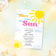 Célébrez votre petit rayon de soleil avec ce faire-part de naissance « Here Comes the Sun ». Avec son thème de soleil radieux, ses nuages doux et ses couleurs joyeuses, ce design apporte une atmosphère chaleureuse et joyeuse à votre célébration de bébé fille. BBY004