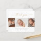 Faire-part de naissance élégant avec collage de 3 photos et message de remerciement au verso. Vous pouvez personnaliser ou supprimer le message de remerciement si vous préférez écrire votre propre message à la main.
