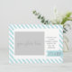 Annoncez l'arrivée de votre bébé avec cette adorable faire-part de naissance rayée bleue et blanche. Ajoutez une photo et une personnaliser avec votre propre police et vos propres mots.