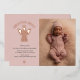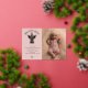 Célébrez l'arrivée d'un petit ange avec cette carte de naissance céleste ! Avec les mots « Ciel Envoyé » et un ange rempli de cœurs pour un thème éthéré qui capture l'essence de votre petite bénédiction. Le foil métallisé rose gold ajoute une touche d'élégance et de luxe. Parfaite pour les familles de foi, cette conception intègre une croix pour une touche significative. Personnalisez la carte avec une photo de portrait vertical de votre bébé et modifiez facilement les modèles de texte pour une carte d'annonce de naissance personnalisée.