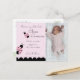 Annoncez l'arrivée de la nouvelle "petite dame" avec nos mignonnes cartes de faire-part coccinelle et fleur. Ajoutez votre propre photo, modifiez le texte :: Police :: Couleur en cliquant sur le bouton "personnaliser" et vous pouvez également supprimer les lignes et le timbre au dos si vous l'envoyez comme une invitation.
