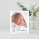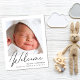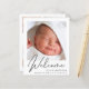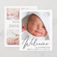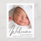 Une faire-part de naissance bébé sans rapport avec le sexe qui respecte le budget. Le recto présente la photo de votre nouveau-né, son nom complet, sa date d'arrivée et ses statistiques de naissance, et son "Bienvenue" écrit dans un script élégant. Au contraire, vous pouvez ajouter trois photos supplémentaires et des noms de parents et de frères et soeurs, ainsi qu'un remerciement, une visite ou un autre message.