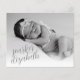 Les petites annonces de naissance élégantes de 4,5 po x 5,6 po présentent votre photo préférée de nouveau-né, le nom et les statistiques de naissance de votre bébé en lettres chic sur le devant et trois photos, et vos noms sur le dos. **CONSEIL : Vous pouvez vouloir dimensionner les 2 photos carrés au dos AVANT de les télécharger pour un placement facile. Ces annonces abordables sont imprimées sur papier de 110 livres disponible en 3 tailles. **LES ENVELOPPES BLANCHES SONT FACULTATIVES SUR LA PAGE DE COMMANDE. Assurez-vous de vérifier votre commande deux fois avant de l'ajouter à votre panier, car ce que vous voyez à l'écran est ce qui sera imprimé. Le service de design en direct peut vous aider à mettre en page votre design si nécessaire.