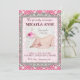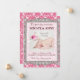 Faire-part de naissance damassé rose et marron. Super mignon et totalement personnalisable avec votre photo et votre propre texte.