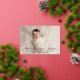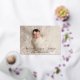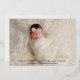 Partagez l'arrivée de votre nouveau-né avec ce faire-part de naissance élégant à la feuille d'or véritable. Le nom de votre bébé brille en lettres dorées en relief sur une photo de paysage, avec les détails de naissance et un message des parents fiers en dessous. Le verso présente un motif abstrait à pois blancs sur fond doré champagne avec de la place pour une photo carrée supplémentaire. La couleur de fond et tout le texte sont entièrement personnalisables.