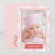 Ce faire-part de naissance de bébé fille présente une impression de pieuvre corail et rose et des accents corail et rose. La typographie combine le fantaisiste et le traditionnel, pour une conception amusante convenant à l'introduction de votre nouveau-né Bébé Fille ! Le verso présente un motif amusant de bulles et les noms des parents fiers. Pour des versions personnalisées, contactez-nous et créons quelque chose de fabuleux !