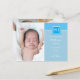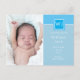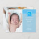 Carte de faire-part de naissance de bébé garçon avec monogramme moderne pour présenter votre beau nouveau-né. Le recto comprend une photo de bébé, l'initiale du monogramme et les informations de naissance blanches et les messages sur des panneaux bleus. Le verso comporte trois autres photos de bébé. Conçu par Thisisnotme©