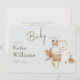 Faire-part de naissance. Sauge clair. Berceau marron et crème Boho. Simple. Minimaliste. Mignon. Virtuel. Conférence Zoom. Girafe. Arrondi.