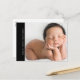 Faire-part de naissance de bébé, photo. Fond noir. Moderne.