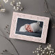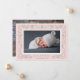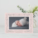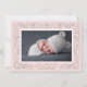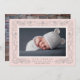 Une bordure botanique complexe en rose pâle et gris élégant encadre votre photo horizontale préférée de nouveau-né dans cette belle faire-part de naissance pour filles tout nouveau-né. Personnalisez avec le nom de votre nouvelle arrivée, les statistiques de naissance et vos noms sous la photo. Ajoutez une deuxième photo au dos si vous le souhaitez, ou retirez l'échantillon de photo pour révéler un motif de rayures blanches et bleues.
