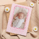 Carte à faire-part de naissance Whimsical et sucré avec cadre photo dessiné à la main en ligne rose vertigineuse.