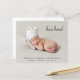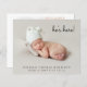 Un petit faire-part de naissance de 5 photos à petit prix. La photo de votre nouveau-né remplit le devant et est superposée de "il est ici !" "elle est ici !" ou "Je suis ici !" dans un script contemporain (vous pouvez déplacer ce texte dans une autre zone de la carte pour convenir à votre photo en sélectionnant "customiser plus loin"). Ajoutez son nom, sa date d'arrivée et ses statistiques de naissance. Au verso, ajoutez quatre photos de famille supplémentaires, un message "accueilli par" et les noms des parents et des frères et soeurs.