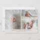 Carte faire-part de naissance simple avec 3 photos avec le nom du nouveau-né et des informations en bas. Vous pouvez ajouter une autre photo et un message au dos. Arrière - plan de crème.