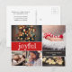 Personnalisé ce collage de voeux de Noël bébé / carte postale faire-part avec vos photos préférées. La carte est parfaite pour exprimer votre enthousiasme en annonçant la naissance de votre premier bébé et envoyer vos voeux de Noël en famille et vous remercier en même temps. Les mots, les photos, l'adresse, l'accueil et l'approbation peuvent être facilement customisés au besoin. Remplacez également la couleur rouge comme souhaité. "Joyful" est fait dans une police de gravure de tableau noir, moderne et amusant.