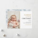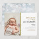 Partagez la joie d'une naissance à Noël avec ce faire-part de naissance élégant et moderne. Personnalisez la couverture avec votre photo spéciale, le nom de votre bébé et les détails de naissance, ainsi que votre message de Noël. Le verso présente de jolis flocons de neige tombant sur un fond givré. Conçu par Thisisnotme©
