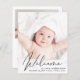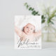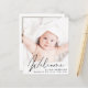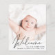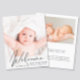 Une option économique pour annoncer la naissance de votre bébé, avec sa photo avec "Bienvenue" en haut d'un script élégant. En dessous, ajoutez son nom, sa date de naissance et ses statistiques de naissance. Au verso, ajoutez une autre photo et un message personnalisé. Ce papier semi-brillant budgétaire est similaire en poids au papier photo. Une version plus grande de 5x7 traditionnelle carte stock est également disponible (message nous pour le lien).