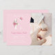 Faire-part bébé rose mignon avec lettre E initiale en blanc et rose. La première est décorée de fleurs dessinées à la main et de papillon. Cette faire-part de naissance simple et élégante est parfaite pour annoncer l'arrivée de votre petite princesse. Photo de Joshua Reddekopp